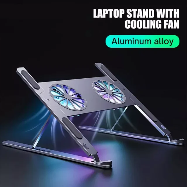 Upgrade your productivity and comfort with this sleek and versatile Adjustable Laptop Stand, designed to enhance your laptop or tablet experience. Whether you’re working from home, gaming, or watching movies, this stand is the ultimate solution to improve ergonomics, cooling, and aesthetics. Equipped with dual RGB lights and a built-in cooling fan, it offers an all-in-one performance boost for your devices.