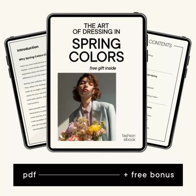 The Art of Dressing in Spring Colors is a beautifully structured ebook designed to help you understand, choose, and wear colors that truly come alive on you. If you have ever felt that certain outfits instantly brighten your look while others fall flat, this guide shows you exactly why. Rooted in practical color theory and real-life wardrobe application, this ebook turns the idea of spring color palette clothing into an easy, usable system you can apply every day.