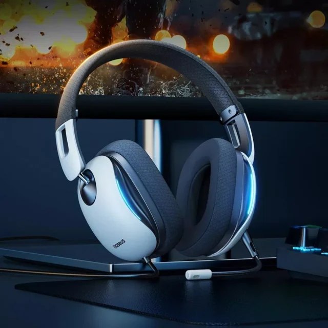 The futuristic black-and-white color block design with glowing blue ambient lighting adds style to substance. Whether on stream or off-screen, this headset doesn’t just sound good—it looks good too.